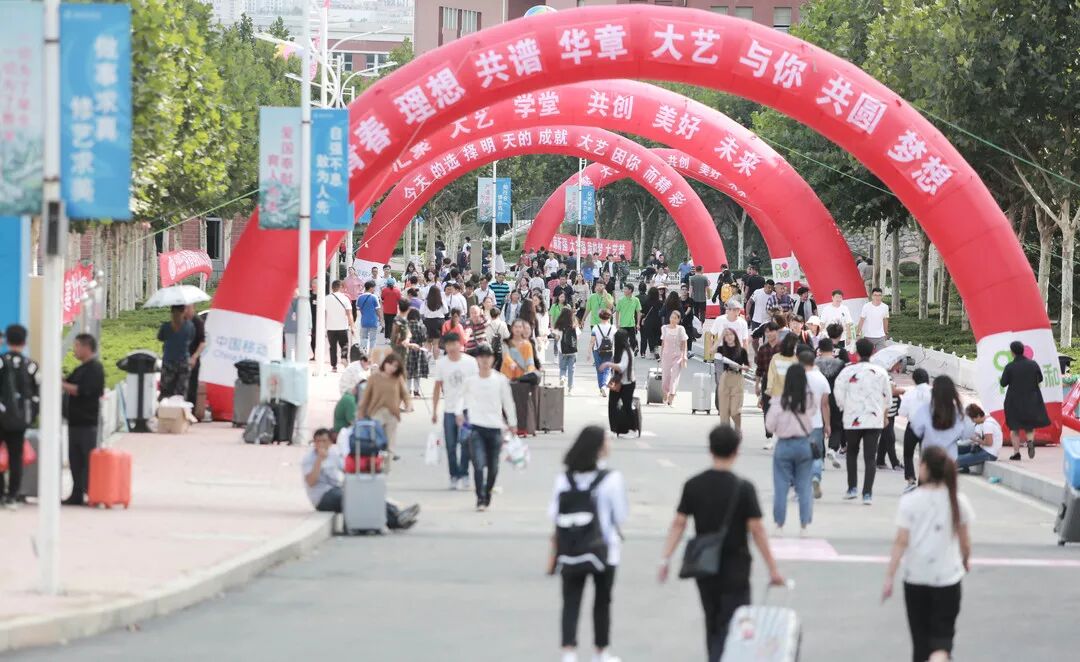 大艺的校园里彩旗飘展,张灯结彩,充满了喜气洋洋的节日气氛。