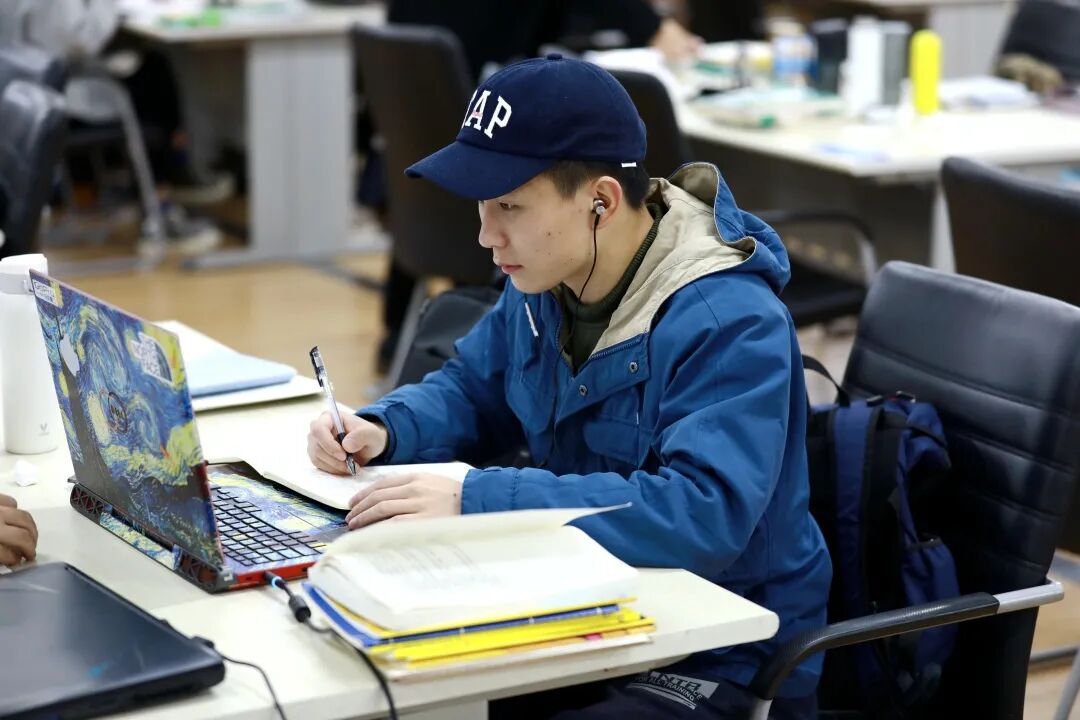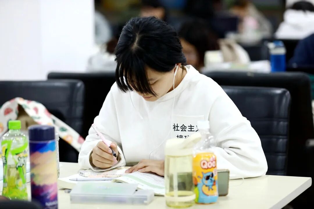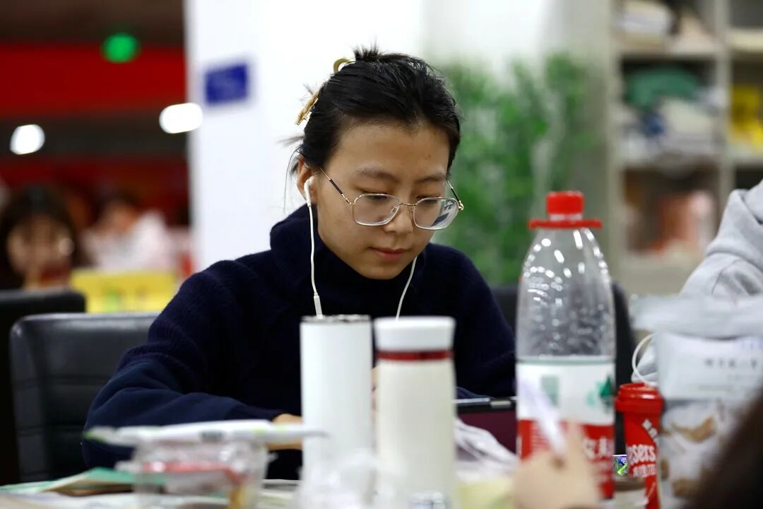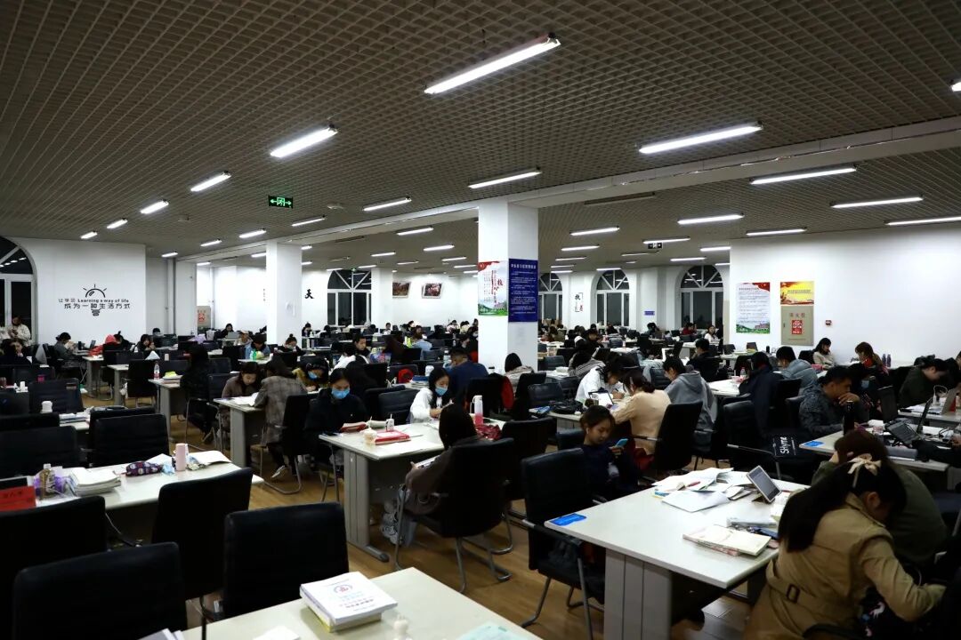 夜渐深,图书馆内仍几乎是座无虚席,同学们带着书籍、复习资料、笔记本电脑等,埋头认真学习。他们中既有刚入校不久的大一新生在预习功课,也有备考年底研究生世预赛现场直播考试的考研生。图书馆内学习氛围浓厚,成为校园中的一道风景线。
